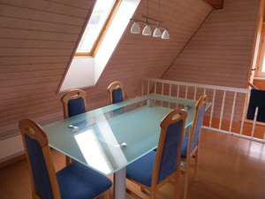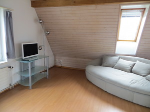 Unsere helle Dachwohnung umfasst eine Fläche von ca. 50qm und besitzt eine eigene Küche und Badezimmer.